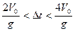 2、计算题  在地面上以初速度2V0竖直上抛一物体A后,又以初速V0同地点竖直上抛另一物体B,若要使两物体能在空中相遇,则两物体抛出的时间间隔必须满足什么条件?(不计空气阻力)