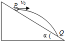 3、计算题  (11分)如图所示,宇航员站在某质量分布均匀的星球表面一斜坡上P点,沿水平方向以初速度 抛出一个小球,测得小球经时间t落到斜坡上另一点Q,斜面的倾角为α,已知该星球的半径为R.不考虑其它可能存在的阻力。求该星球上的第一宇宙速度