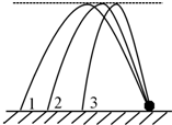 3、选择题 如图所示,水平地面上不同位置的三个小球斜上抛,沿三条不同的路径运动最终落在同一点,三条路径的最高点是等高的,若忽略空气阻力的影响,下列说法正确的是( )