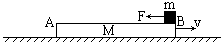 3、简答题 如图,一长为 L=4m,质量为 M="0.5kg" 的木板 AB,正以 v ="14m/s" 的速度(相对地)在光滑水平地面上向右运动,此时,在木板 AB 的上表面 B 端处,一小物块m=2kg受水平向左的拉力 F="6N" 作用,从初速为零(相对地)开始运动.已知,m和M间的动摩擦因数μ=0.1,g 取10m/