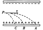 3、选择题 如图所示,有三个质量相等,分别带正电、负电和不带电的小球,从平行板电场左端的中点P点以相同的初速度沿水平方向垂直于电场方向进入电场,它们分别落在A、B、C三点,可以判断