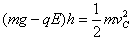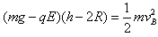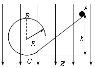4、计算题 如图所示,在竖直向下的匀强电场中,一个质量为m带负电的小球从斜轨道上的A点由静止滑下,小球通过半径为R的圆轨道顶端的B点时恰好不落下来。已知轨道是光滑而又绝缘的,且小球的重力是它所受的电场力2倍。求:
