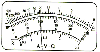 4、实验题 一多用电表的电阻档有三个倍率,分别是×1、×10、×100。用×10档测量某电阻时,操作步骤正确,发现表头指针偏转角度很小,为了较准确地进行测量,应换到___________档。如果换档后立即用表笔连接待测电阻进行读数,那么缺少的步骤是___________,若补上该步骤后测量,表盘的示数如图,则该电阻的阻值是___________Ω。