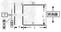 1、计算题 飞行时间质谱仪可以根据带电粒子的飞行时间对气体分子进行分析。如图所示,在真空状态下,自脉冲阀P喷出微量气体,经激光照射产生不同正离子,自a板小孔进入a、b间的加速电场,从b板小孔射出,沿中线方向进入M、N板间的方形区域,然后到达紧靠在其右侧的探测器。已知极板a、b间的电压为U0,间距为d,极板M、N的长度和间距均为L。不计离子重力及经过a板时的初速度。