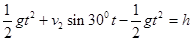 3、选择题 如图所示,在地面上方高度h处将A球以初速度v1水平抛出,同时在A球正下方地面处将B球以与地面成30°角的初速度v2斜向上抛出,两球在空中相遇,不计空气阻力,则(?)