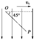 3、选择题 如图所示,地面上某区域存在着竖直向下的匀强电场,一个质量为m的带负电的小球以水平方向的初速度v0由O点射入该区域,刚好通过竖直平面中的P点,已知连线OP与初速度方向的夹角为45°,则此带电小球通过P点时的动能为?