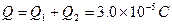 设开关接位置1与位置2时,电容器所带电量分别为和