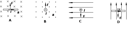 5、选择题 如图所示,各图中标出了磁场B的方向、通电直导线中电流I的方向, 以及通电直导线所受磁场力F的方向,其中正确的是( ?)