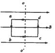 5、选择题 如图所示,匀强磁场中有一通以方向如图的稳定电流的矩形线abcd,可绕其中心轴OO"转动,则在转动过程中