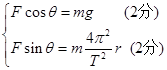 4、计算题 (8分)如图所示,用长为L的细绳拴住一个质量为m的小球,当小球在水平面内做匀速圆周运动时,细绳与竖直方向成θ角,求: