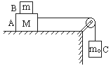 2、选择题 A、B、C三物块质量分别为M、m和m0,作如图所示的连结.绳子不可伸长,且绳子和滑轮的质量、滑轮的摩擦均可不计.若B随A一起沿水平桌面作匀速运动,则可以断定(?)