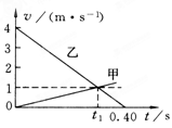2、选择题  两物体甲和乙在同一直线上运动,它们在0~0.4s时间内的v-t图象如图所示。若仅在两物体之间存在相互作用,则物体甲与乙的质量之比和图中时间t1分别为(?)
