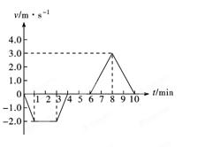 3、选择题 2012年6月24日,中国第一台自行设计、自主集成研制的深海载人潜水器——“蛟龙”号在西太平洋的马里亚纳海沟下潜深度超过7000米,预示着中国已经有能力征服全球99.8%的海底世界。假设在某次实验时,“蛟龙”号从水面开始下潜到最后返回水面共历时10min,其速度随时间的变化如图所示,则“蛟龙”号( )