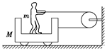 4、选择题 如图所示,光滑水平地面上的小车质量为M,站在小车水平底板上的人质量为m.人用一根跨过定滑轮的绳子拉小车,定滑轮上下两侧的绳子都保持水平,不计绳与滑轮之间的摩擦.在人和车一起向右加速运动的过程中,下列说法正确的是( )