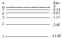 3、选择题 氢原子的能级如图所示,动能为12.95ev的电子与处于基态的氢原子发生碰撞,忽略碰撞过程中氢原子的动能变化,且碰撞过程中没有其它能量损失,则电子碰撞氢原子后的动能不可能的是