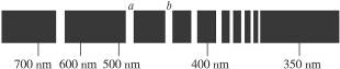 2、选择题 图17-13甲所示为氢原子的能级,图17-13乙为氢原子的光谱.已知谱线a是氢原子从n=4的能级跃迁到n ="2" 的能级时的辐射光,则谱线b是氢原子(?)