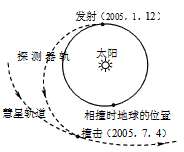 5、选择题 2005年北京时间7月4日下午1时52分撞击器成功撞击“坦普尔一号”彗星,投入彗星的怀抱,实现了人类历史上第一次对彗星的“大碰撞”,如图所示。假设“坦普尔一号”彗星绕太阳运行的轨道是椭圆,运行周期为5.74年,忽略此次撞击对彗星运动的影响。下列关于“坦普尔一号”彗星的说法中正确的是: