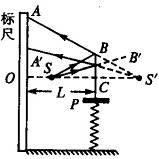 松开插销K后,弹簧下降Δx,镜子在B′点,光斑在A′点,△S′OA′∽△S′CB′可得:
