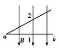 5、选择题  如图所示,磁场方向竖直向下,通电直导线ab由水平位置1绕a点在竖直平面内转到位置2,通电导线所受安培力是(  )