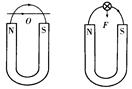 根据图所示的导线所在处的特殊位置判断其转动情况.将导线从N、S极的中间分成两段,左、右段所在处的磁场方向如左图所示,由左手定则可得左段受安培力的方向垂直纸面向外,右段受安培力的方向垂直纸面向里,从上向下看,导线将绕0点沿逆时针方向转动。再根据导线转过900时的特殊位置判断其上下运动情况.如右图所示,导线此时受安培力方向竖直向下,导线将向下运动.由上述两个特殊位置的判断可知,当导线不在上述的特殊位置时,所受安培力使导线逆时针转动的同时还要向下运动。