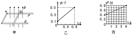 (2)若保持磁感应强度B0的大小不变,从t=0时刻开始,给b棒施加一个水平向右的拉力,使它做匀加速直线运动.此拉力F的大小随时间t变化关系如图丙所示.求匀加速运动的加速度及b棒与导轨间的滑动摩擦力.