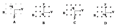 5、选择题 下列带电粒子在磁场中运动受到电磁力作用的方向不正确的是( )