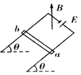 1、计算题 如图所示,两根平行放置的金属导轨,间距为L,倾角为θ,轨道间有电动势为E、内阻不计的电源。现将一质量为m,电阻为R的铜棒ab与轨道垂直放于导轨上,流过铜棒ab的电流为I,导轨与铜棒间的动摩擦因数为μ。导轨电阻不计,要使ab棒静止在导轨上,求所施加的竖直向上的磁场磁感应强度大小的范围?