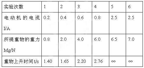 (2)实验中保持电动机两端电压U恒为6V,重物每次匀速上升的高度h均为1.5m,所测物理量及测量结果如下表所示: