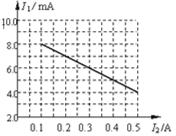 其他同学根据上述设计的实验电路利用测出的数据绘出的I1-I2图线(I1为电流表G的示数,I2为电流表A的示数),则由图线可以得到被测电池的电动势E=?V,内阻r=?Ω。