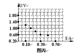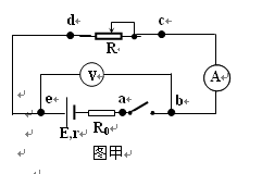 3、实验题 图甲为某同学测定电池的电动势和内电阻的实验电路图。图中R0为阻值2Ω的定值保护电阻。 ⑴ 该同学将电路连接好后闭合电键发现:电压表读数不为零,但电流表读数为零,检查确定各接线柱正确且接触良好。于是该同学用多用表的电压档检查电路,测得 ,而 读数与电压表读数相同。由此可以推知故障是?。 ⑵ 将图乙的实物连线电路补充完整(用黑色笔连线),并将用多用表的电压档检查电路中c、d两端的电压也用笔画线代导线将线路连接起来。 ⑶ 故障排除后,该同学完成了实验,测出相关数据如下表所示,并在图丙的U-I坐标中描出了对应的点。请画出U-I图线,并由图求出:电池的电动势为?V ,内阻为?Ω。