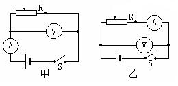 (1)如果采用甲电路,电阻R的测量值比真实值__________, 如果选用乙电路进行测量,则电阻R的测量值比真实值__________。(以上填“相同”、“偏大”或“偏小”) (2)如果待测电阻较小(比电压表小得多,与电流表内阻差不多),为了使测量结果比较准确,应该选用图_____所示的电路。如果待测电阻较大(与电压表内阻差不多,比电流表内阻大很多),为了使测量结果比较准确,应该选用图_____所示的电路。