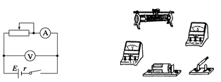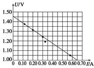 本题解析: (1)按照实验原理图将实物图连接起来,如图甲所示. (2)根据U、I数据,在方格纸U?I坐标系上找点描迹.如图乙所示,然后将直线延长,交U轴于U1≈1.45 V,此即为电源电动势;交I轴于I≈0.65 A,注意此时U2=1.00 V,由闭合电路欧姆定律得I= ,则r= = Ω≈0.69 Ω.