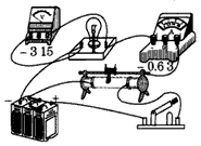 3、实验题 用如图甲所示的器材做“描绘小灯泡的伏安特性曲线”实验。小灯泡标有“6V 3W”的字样。蓄电池电动势为8V,滑动变阻器有两种规格:R1标有“5Ω 2A”,R2标有“100 Ω 20 mA”,各电表的量程如图所示。测量时要求小灯泡两端的电压从零开始,并测多组数据。