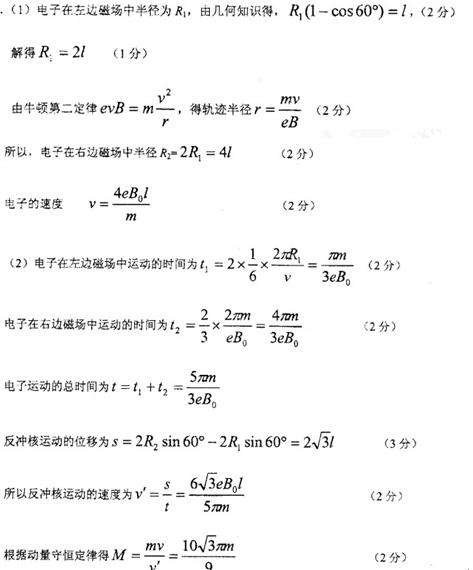 (1)电子在两磁场中运动的轨道半径大小(仅用l表示)和电子的速度大小;