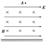 3、选择题 从地面上方A点处自由落下一带电荷量为+q、质量为m的微粒,地面附近有如图所示的匀强电场和匀强磁场,电场方向水平向右,磁场方向垂直纸面向里,这时粒子的落地速度大小为v1,若电场不变,只将磁场的方向改为垂直纸面向外,粒子落地的速度大小为v2,则