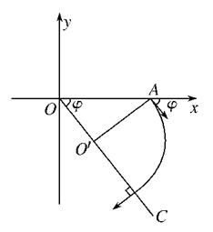 本题解析:(1)质点在磁场中的轨迹为一圆弧.由于质点飞离磁场时,速度垂直于OC,故圆弧的圆心在OC上.依题意,质点轨迹与x轴的交点为A,过A点作与A点的速度方向垂直的直线,与OC交于O′.由几何关系知,AO′垂直于OC,O′是圆弧的圆心.设圆弧的半径为R,则有