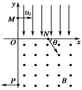 2、计算题 (12分)在平面直角坐标系xOy中,第Ⅰ象限存在沿y轴负方向的匀强电场,第Ⅳ象限存在垂直于坐标平面向外的匀强磁场,磁感应强度为B.一质量为m、电荷量为q的带正电的粒子从y轴正半轴上的M点以速度v0垂直于y轴射入电场,经x轴上的N点与x轴正方向成θ=60°角射入磁场,最后从y轴负半轴上的P点垂直于y轴射出磁场,如图所示.不计粒子重力,