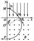 点评:此题要求首先要分析电子在各个区域内的运动情况,必要时画出电子的运动轨迹图,了解图中的几何关系.利用电子在电场中偏转时的速度的合成与分解,解决电子 在电场中运动的相关问题;利用电子在匀速圆周运动的半径和周期公式,结合洛伦兹力提供向心力可解答电子在磁场中运动的相关问题.电子从磁场边界以一定的角度射入只有一个边界的匀强磁场,当再次射出磁场时,速度与边界的夹角与原来的相等.解题时充分利用这个结论,对解题有非常大的帮助.