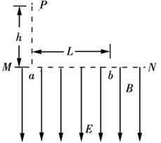 2、计算题 如图所示,一个带电的小球从P点自由下落,P点距场区边界MN高为h,边界MN下方有方向竖直向下、电场强度为E的匀强电场,同时还有垂直于纸面的匀强磁场,小球从边界上的a点进入电场与磁场的复合场后,恰能做匀速圆周运动,并从边界上的b点穿出,已知ab=L,求: