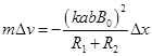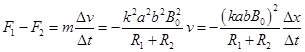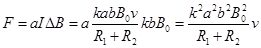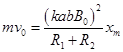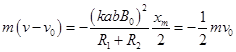 5、计算题 如图所示,质量为m的矩形线框MNPQ,MN边长为a,NP边长为b;MN边电阻为R1,PQ边电阻为R2,线框其余部分电阻不计。现将线框放在光滑绝缘的水平桌面上,PQ边与y轴重合。空间存在一个方向垂直桌面向下的磁场,该磁场的磁感应强度沿y轴方向均匀,沿x轴方向按规律Bx=B0(1-kx)变化,式中B0和k为已知常数且大于零。矩形线框以初速度v0从图示位置向x轴正方向平动。求: