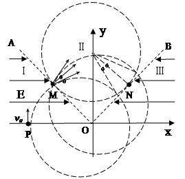 (3)如图带电粒子匀速圆周运动恰好未离开第1象限,圆弧左边与y轴相切N点 ⑦