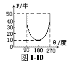 4、实验题 作用在同一质点的两个力的合力F随两个分力夹角大小变化情况如图1-10(原图1-22)所示,则两力的大小分别是_______N和_______N.[3]