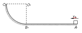 3、计算题 (16分)一滑块经水平轨道AB,进入竖直平面内的四分之一圆弧轨道BC。已知滑块的质量m=0.6kg,在A点的速度vA=8m/s,AB长x=5m,滑块与水平轨道间的动摩擦因数μ=0.15,圆弧轨道的半径R=2m,滑块离开C点后竖直上升h=0.2m,取g=10m/s2。