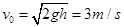 2、选择题 物体自h高处做自由落体运动的落地速度为10m/s,则h为 (g取10m/s2)