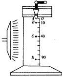 3、选择题 某科技馆中有一个展品,该展品放在较暗处,有一个不断均匀滴水的水龙头(刚滴出的水滴速度为零)在平行光源的照射下,可以观察到一种奇特的现象:只要耐心地缓慢调节水滴下落的时间间隔,在适当的情况下,看到的水滴好像都静止在各自固定的位置不动(如图中A、B、C、D所示,右边数值的单位是cm)。要想出现这一现象,所用光源应满足的条件是(取g=10 m/s2)