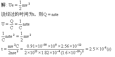 5、简答题 伦琴射线照射未带电的平行板电容器的一块极板,电子以速度V=