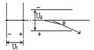 5、选择题  如图示,电子在电势差为U1的加速电场中由静止开始运动,然后射入电势差为U2的两块平行极板间的电场中,入射方向跟极板平行。整个装置处在真空中,重力可忽略。在满足电子能射出平行板区的条件下,下述四种情况中,一定能使电子的偏转角θ变大的是 (? )