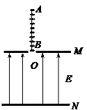 5、计算题 如图所示,M、N是水平放置的一对正对平行金属板,其中M板中央有一小孔O,板间存在竖直向上的匀强电场,AB是一根长为9L的轻质绝缘细杆,(MN两板间距大于细杆长度)在杆上等间距地固定着10个完全相同的带电小环,每个小环带电荷量为q,质量为m,相邻小环间的距离为L,小环可视为质点,不考虑带电小环之间库仑力。现将最下端的小环置于O处,然后将AB由静止释放,AB在运动过程中始终保持竖直,经观察发现,在第二个小环进入电场到第三个小环进入电场前这一过程中,AB做匀速直线运动,求: