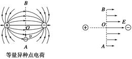 5、选择题 如图所示,一带负电粒子沿等量异种点电荷的中垂线由A→O→B匀速飞过,重力不计, ( )