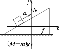 在水平方向上有:f=M×0+macosα;在竖直方向上有:N-(M+m)g=M×0+masinα